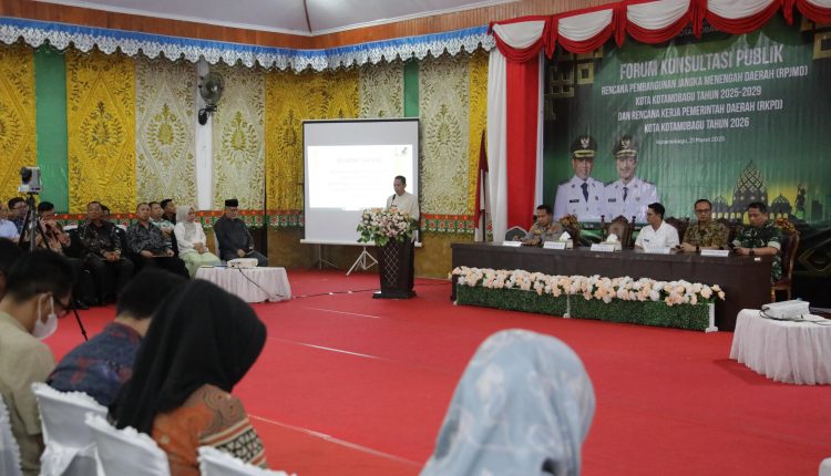 KOTAMOBAGU – Wali Kota Kotamobagu, dr. Weny Gaib, Sp.M., secara resmi membuka Forum Konsultasi Publik Rencana Pembangunan Jangka Menengah Daerah (RPJMD) Kota Kotamobagu Tahun 2025 – 2029 dan Rencana Kerja Pemerintah Daerah (RKPD) Kota Kotamobagu Tahun 2026. Acara yang dilaksanakan pada hari Jumat, 21 Maret 2025, bertempat di Aula Rumah Dinas Wali Kota Kotamobagu.