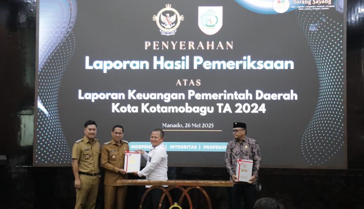 KOTAMOBAGU – Pemerintah Kota Kotamobagu dibawah Kepemimpinan Wali Kota dr Weny Gaib dan Wakil Wali Kota Rendy V Mangkat meraih Opini WTP dari BPK RI Perwakilan Provinsi Sulawesi Utara, Senin 26 Mei 2025, di di Kantor BPK RI Jalan 17 Agustus, Manado.