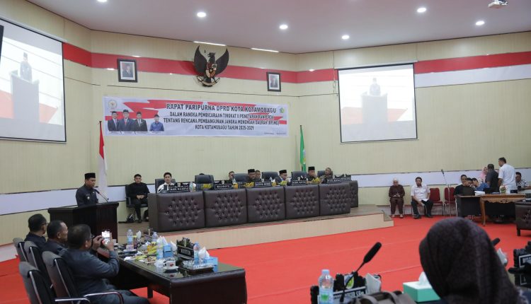 Wali Kota juga menyampaikan Apresiasi dan Penghargaan yang setinggi – tingginya, disertai ucapan terima kasih yang sebesar – besarnya, kepada Pimpinan dan seluruh Anggota DPRD Kota Kotamobagu yang telah memberikan dukungan penuh dalam seluruh tahapan Penyusunan, hingga pada tahapan Penetapan dokumen Rancangan Peraturan Daerah Tentang Rencana Pembangunan Jangka Menengah Daerah Kota Kotamobagu Tahun 2025 – 2029.