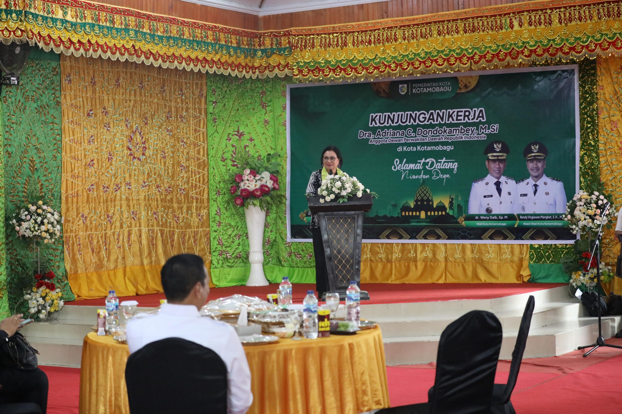 Kunjungan Kerja Anggota Dewan Perwakilan Daerah Republik Indonesia, Dra. Adriana. C. Dondokambey, M.Si di Kota Kotamobagu, dihadiri Anggota DPRD Kota Kotamobagu, Dr. Ns Henny Kaseger, S.Kep., M.Kes, para Organisasi Pimpinan Perangkat Daerah, para Staf Khusus Wali Kota Kotamobagu, para Camat, Lurah dan Sangadi, para Tokoh Agama, Tokoh Adat dan Tokoh Masyarakat serta para Aparatur Sipil Negara dilingkungan Pemerintah Daerah Kota Kotamobagu. (Adv)
