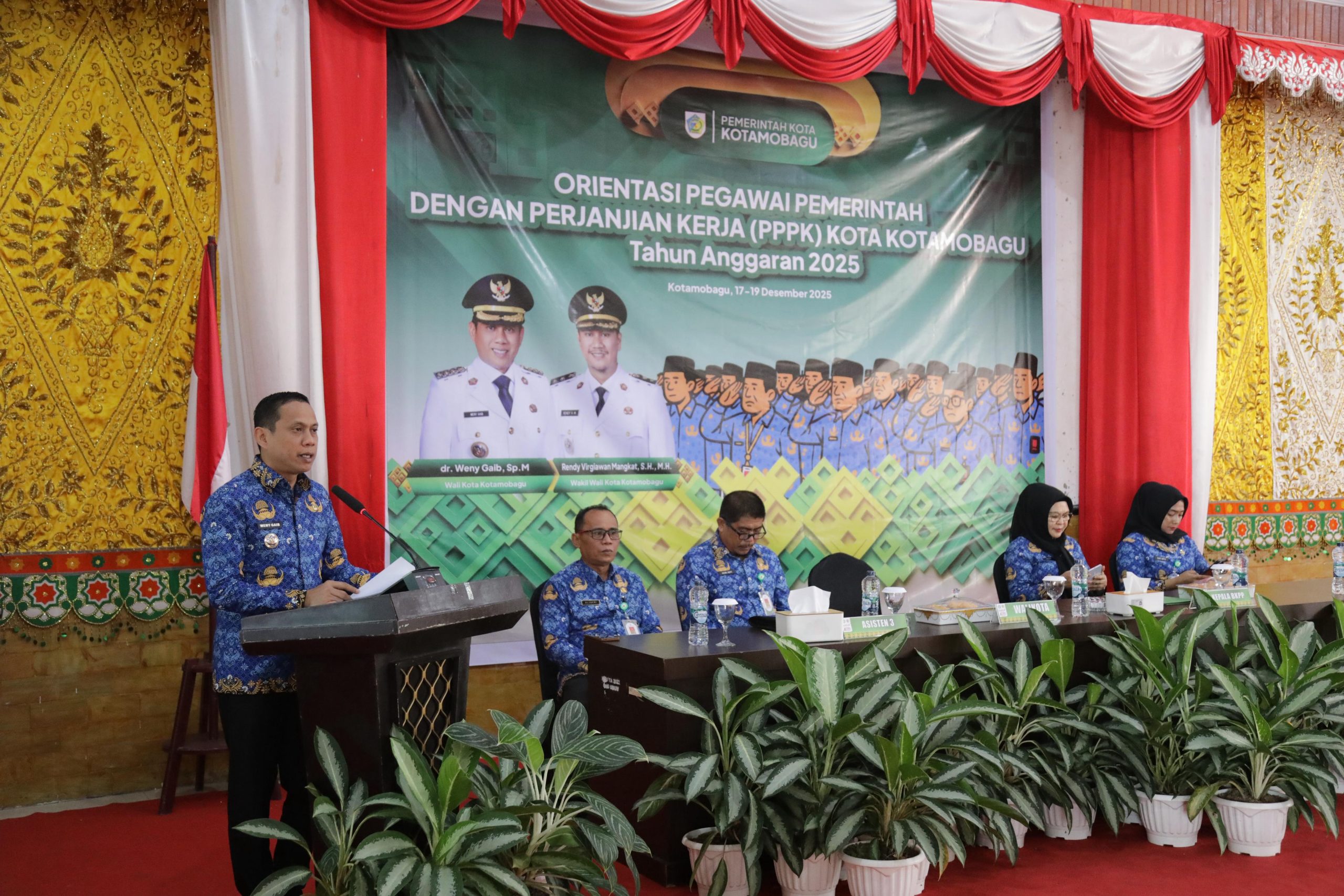 KOTAMOBAGU – Wali Kota, dr. Weny Gaib, Sp.M., membuka secara resmi Orientasi Pegawai Pemerintah Dengan Perjanjian Kerja (PPPK) di lingkungan Pemerintah Kota Kotamobagu Tahun Anggaran 2025, di Aula Rudis, Rabu 17 Desember 2025