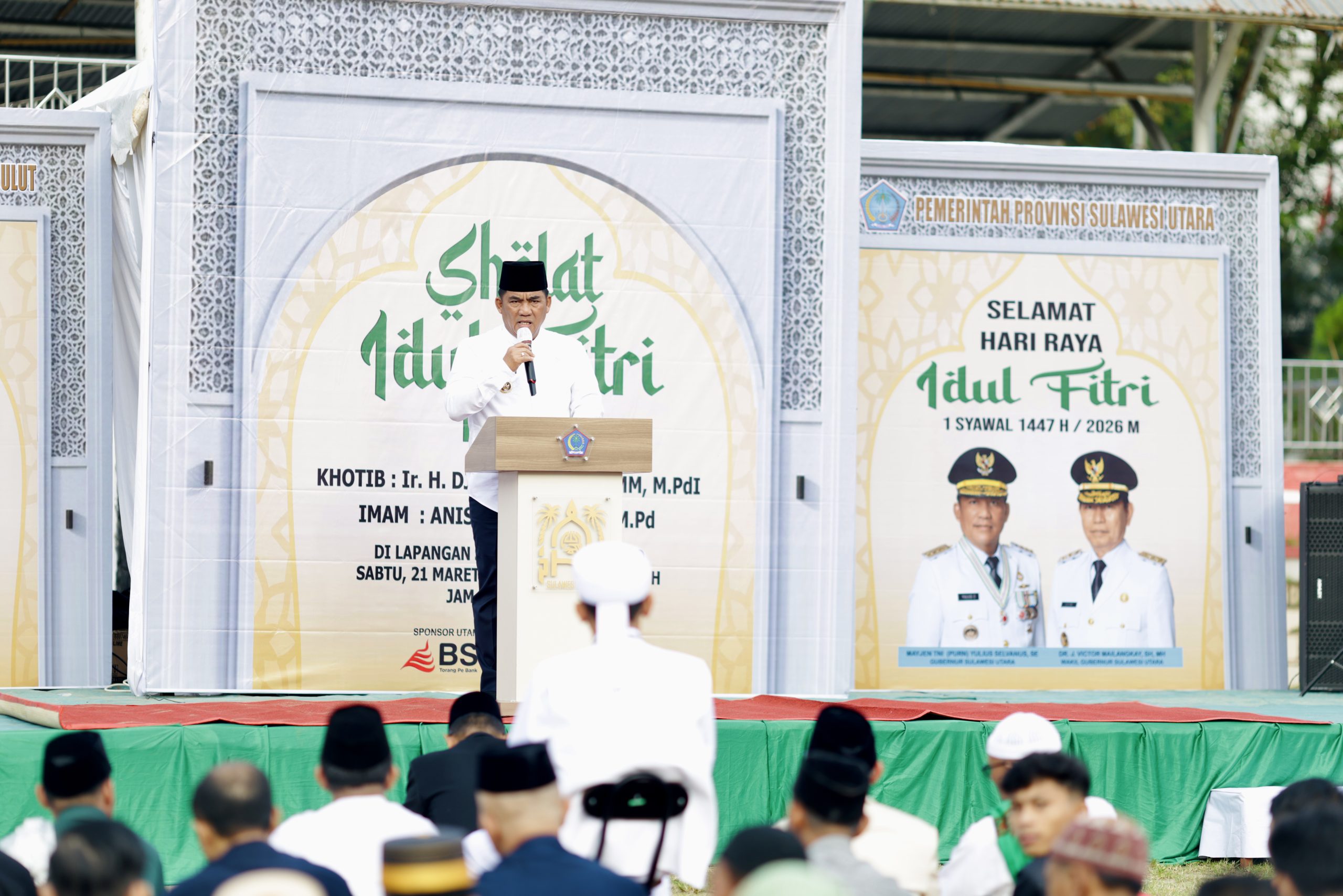 Gubernur Yulius menyampaikan bahwa Idul Fitri merupakan simbol kemenangan spiritual setelah satu bulan penuh menjalankan ibadah puasa. Ia menekankan pentingnya menjaga nilai “Torang Samua Basudara” sebagai gaya hidup masyarakat Sulawesi Utara.